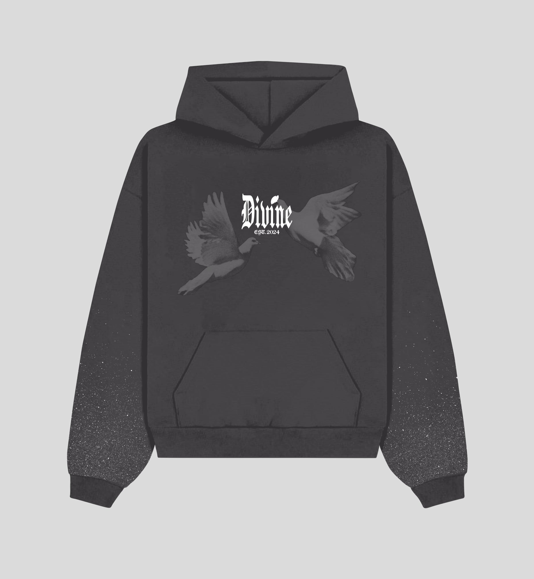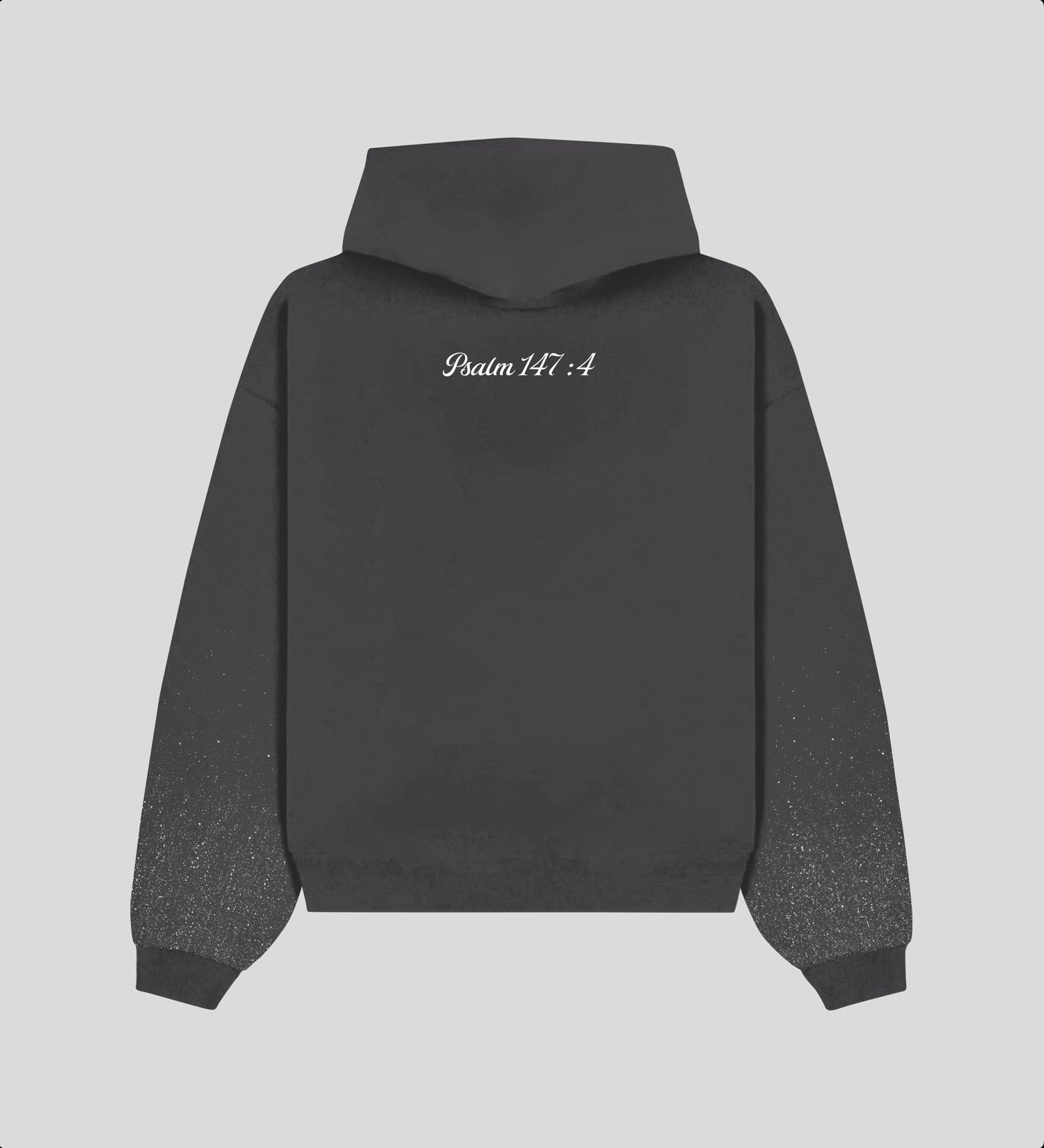 The STARS Hoodie is crafted from 460 GSM French Terry cotton for premium comfort, structure, and quality. Designed with a relaxed baggy fit that stays true to size, it features an embroidered Divine logo and long-lasting screen-printed doves across the chest. The rhinestones, symbolizing stars, add a unique shimmer and are built to last. To complete the piece, Psalm 147:4 is embroidered on the back, keeping God’s Word with you wherever you go.